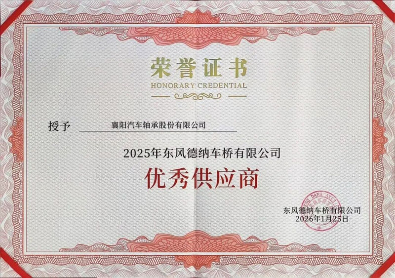 襄陽(yáng)軸承榮獲東風(fēng)德納2025年度“優(yōu)秀供應(yīng)商”稱號(hào)